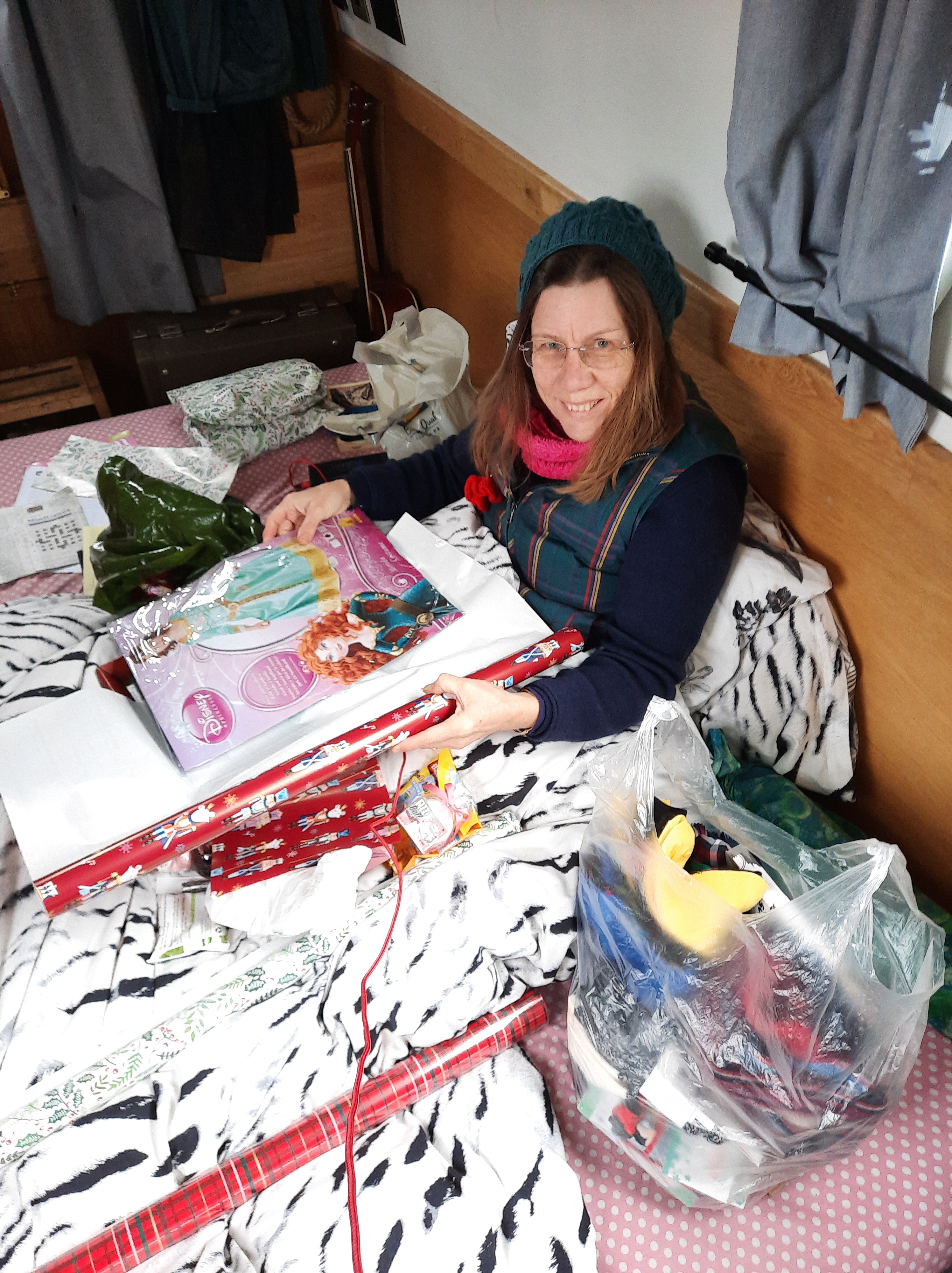 It is getting a little nippy so after dressing I went back under the duvet and as I gradually emerged started wrapping Christmas presents. I had to send a secret santa present to my Japanese nephew in law. Having found that he has a sweet tooth and also has a new motorbike I purchased some suitable gifts that then cost £22 to post!! No doubt they will also be hit by an import duty on arrival! Christmas is fast approaching which feels strange on our boat as we have no decorations to remind us. I thought our house would remain rather sad and sober but I didn’t reckon on son G and girlfriend M, who have discovered my stash of Christmas decorations in the loft and have set too. Sending through the picture of the Lladro Nativity scene was a joy – I bought it in the German ‘naafi’ when my brother in law was in the army (think it cost £70) so it has been on display for over 40 Christmases!
