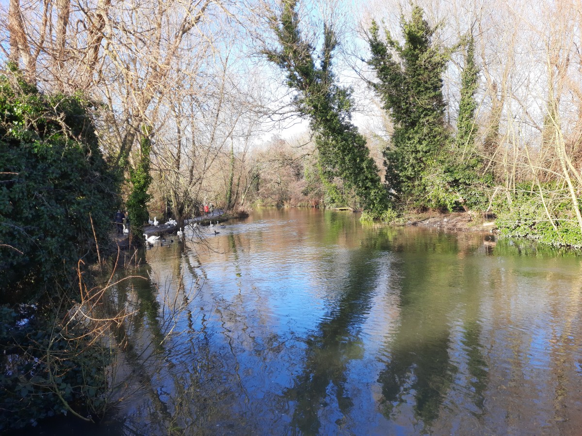 I am not sure where I get my weather reports from but they seem to be more gloomy in prediction than reality, for which I am thankful! I thought today we would be in need of our wet weather gear so when we set off to discover what Rickmansworth has to offer, our next port of call, I donned both rainmac and waterproof trousers. I needn’t have worried. Blue sky accompanied us all the way and the first rain drops fell as we arrived back at the boat three hours later. It was quite a stretch to Rickmansworth and much of the towpath along the way had ‘do not moor’ notices to visitors. We passed alot of live aboard widebeams and quite a few garden patches that adjoined them. However once in the town itself we found ample space so will moor there for a night tomorrow. I found the town slightly smaller than I imagined it would be. I had hoped to buy one more pack of Christmas cards but there were none to be had in any of the charity shops. There was a large Waitrose, Tesco and an M&S food store but not much else as far as I could see.
