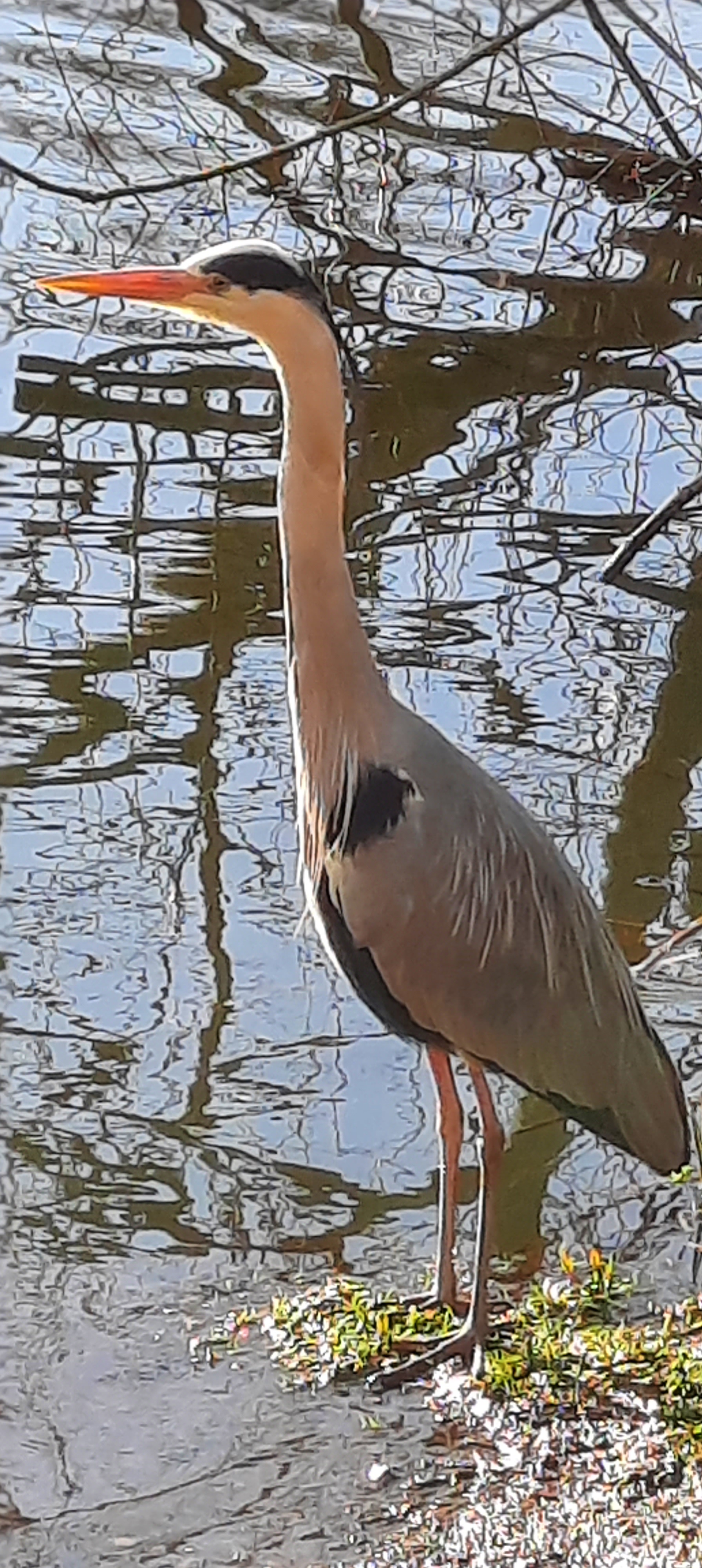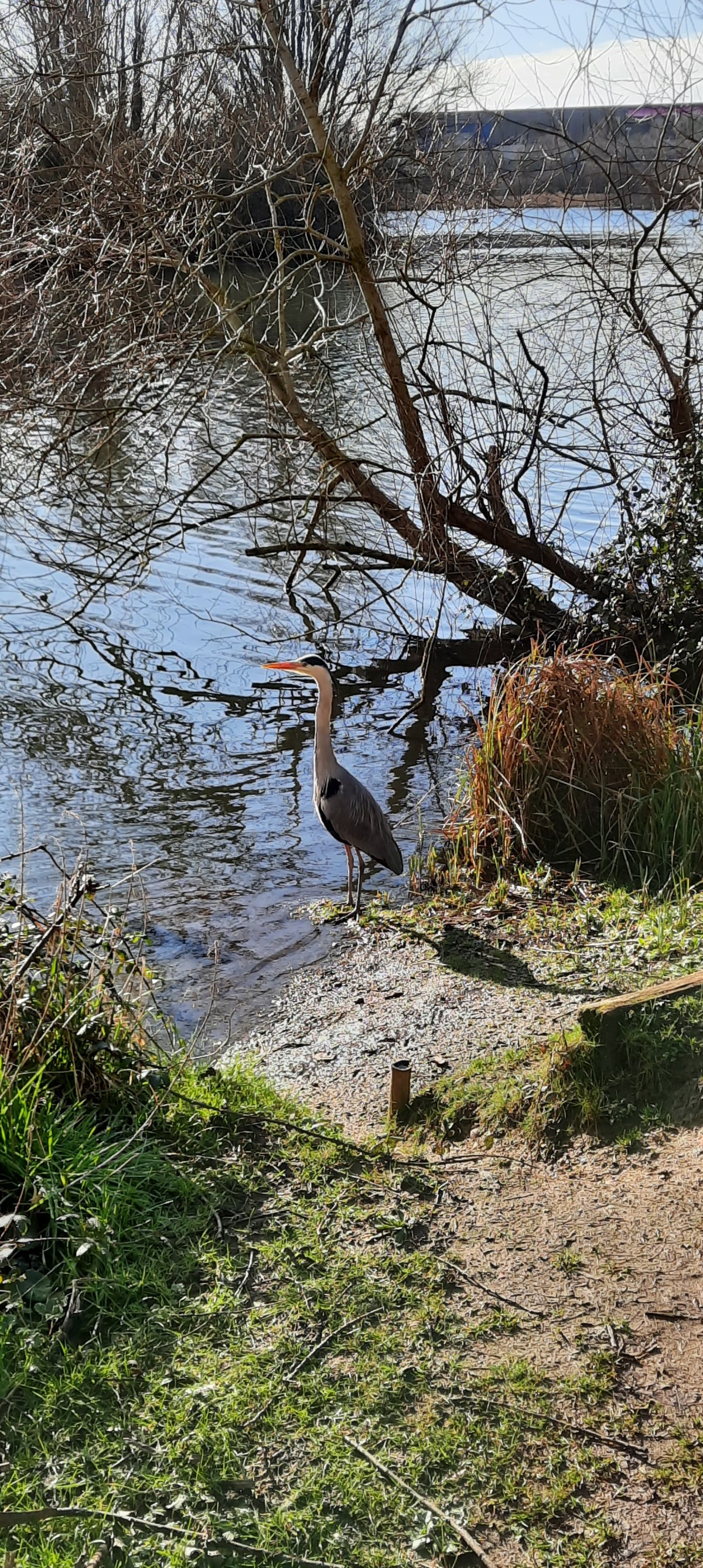 Today three drops of rain on weather forecast 100% at Milton Keynes. Perhaps I can’t interpret the forecast but we’ve had sun and warmth all day enabling us to venture in a new direction from the boat, discovering that we are only a fifteen minute walk from IKEA, T K Maxx, Tecso Extra and Aldi among others! We even window shopped for a new Kia car! We had their people mover years ago and loved it for its spaciousness and versatility. How sad we all were when R sold it one Saturday and we didn’t even get to say goodbye. There was a dodgy folding of notes passed on some motorway between R and the new owner whilst the rest of us had no idea he’d sold it! Bypassing all the shops, half of them closed in any case, we found the other nearby lake and as you can see, I took many pictures to show those of you who may have a downer on MK, how picturesque parts of it are. We were even blessed to see a heron very close up. Yet more flooding prevented us doing a total circular route but what we did we enjoyed and arrived back at the boat all the better for the exercise.
