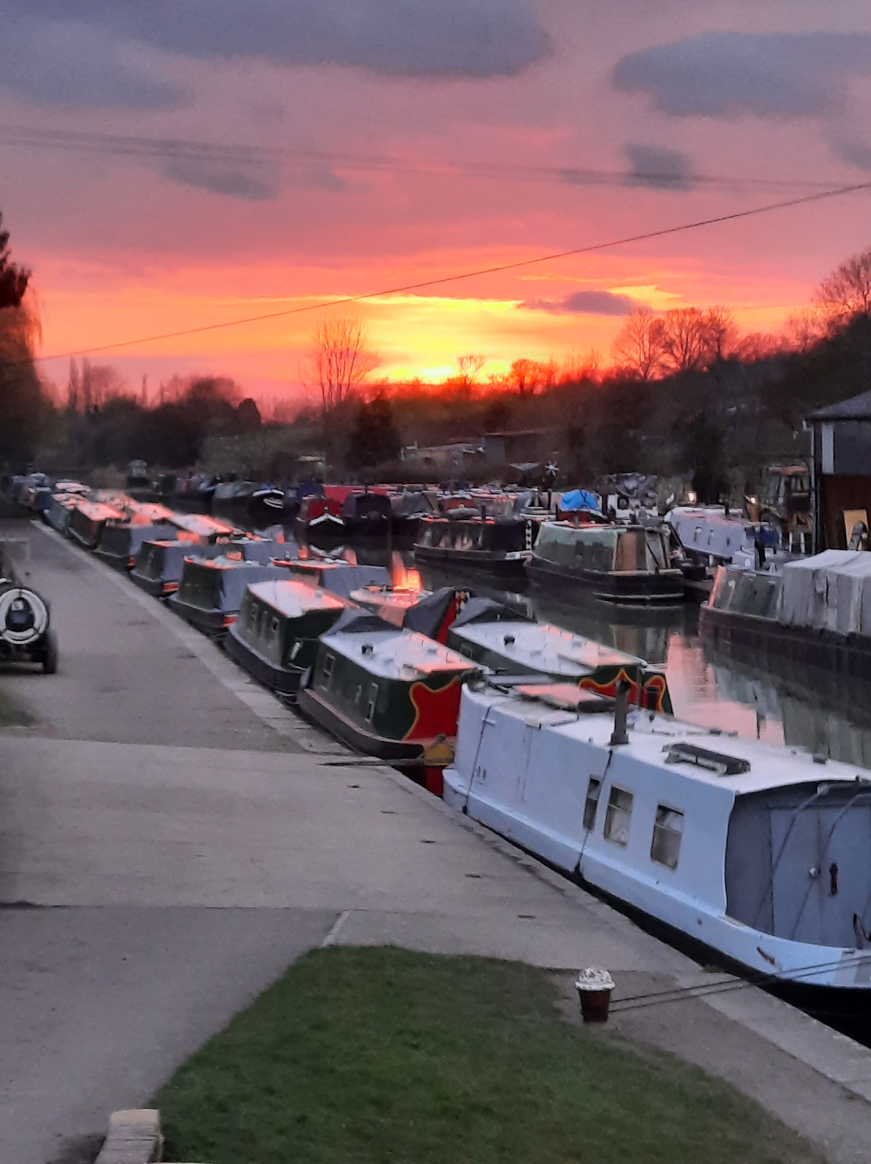 Braunston is usually a hive of activity, a central hub for many boaters as its a crossways between major towns and cities, such as Birmingham, Leicester, Warwick, Coventry, Rugby, Banbury and Oxford and it directly links to the Oxford canal. Not so much happening at the moment but plenty of the rental boats sitting waiting for occupancy once the season starts, and quite a few liveaboards on the towpath. In high season I imagine it is mayhem! I took an evening stroll and saw a very stunning red sky as the sun was setting, a truly beautiful sight.
