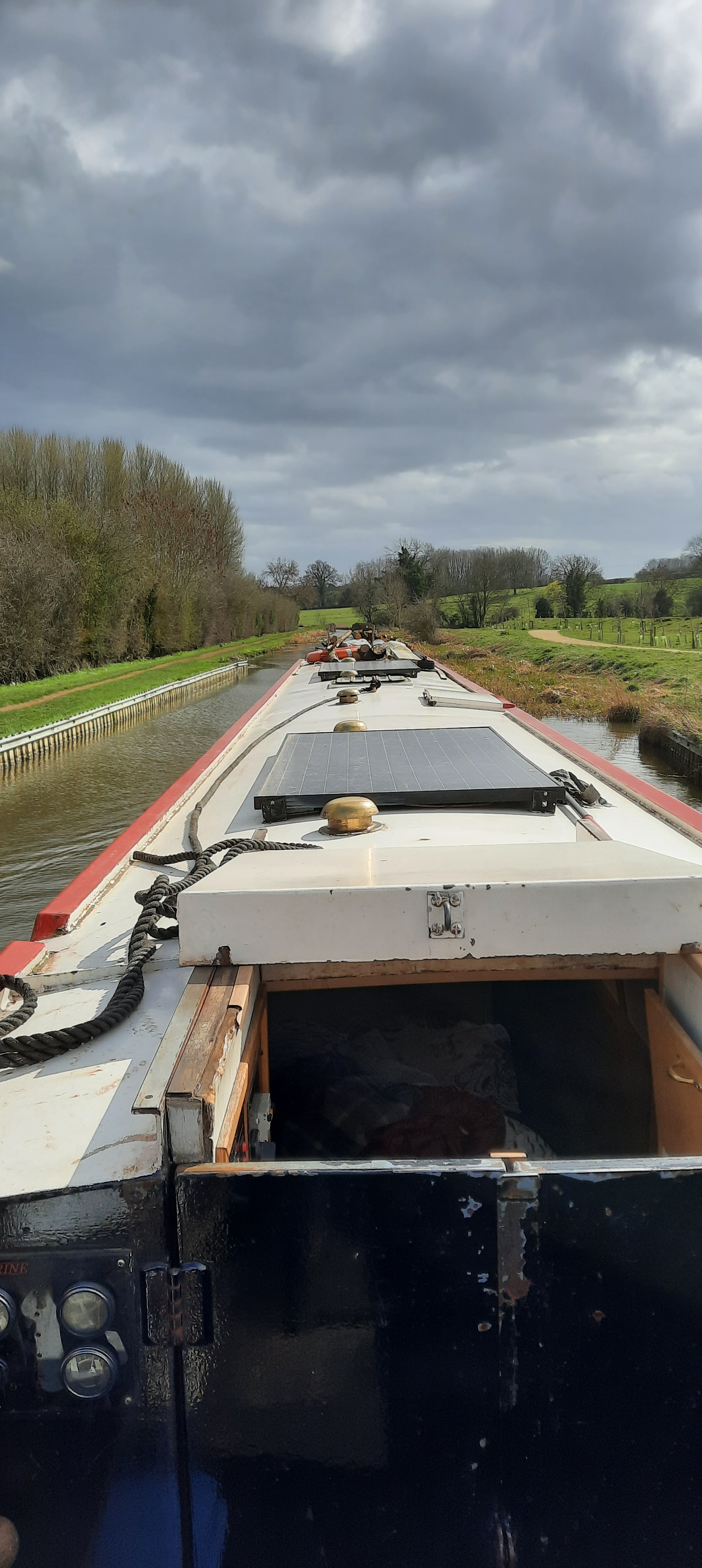What was a problem was my mooring up for the night! We found a lovely stretch of water with few trees and a beautiful view across flat fields so I assumed I could move the boat parallel to the canal side, jump off midrope in hand, pull the boat close alongside and secure midrope. Then secure fore and aft ropes. I hadn’t factored in the wind, nor the fact that there were no trees to act as a natural wind break. The one available tree I tried to use as a bollard to secure the midrope around, but try as I might, I could not pull the bow of the boat in – it kept veering into the centre of the canal. Eventually I decided to hop back on board and try to steer the front round but all I succeeded in doing was drifting the entire boat to the muddy side of the canal and getting stuck (meanwhile R was watching helplessness from the towpath!). I tried to pushoff using the boat pole but didn’t have the strength to make a difference. Eventually by reversing hard I freed the boat from the mud but then heard a plop – the pole was floating (luckily it didn’t sink!) in the canal. So I went to the bow and found the grabber stick we use for picking up rubbish, walked along the outside edge of the boat where the pole was parallel and quite closely, managed to grab it, haul it up side of boat into my hand whilst still holding onto boat with other hand. Amazing what you do when you have to! Safely back at the helm, pole secured, I reversed the boat back to the towpath and threw R the midrope. I just couldn’t do it on my own. So what did I learn? It may look picturesque to moor the boat with no windbreak and a beautiful view but actually if it is windy, find a sheltered mooring!!