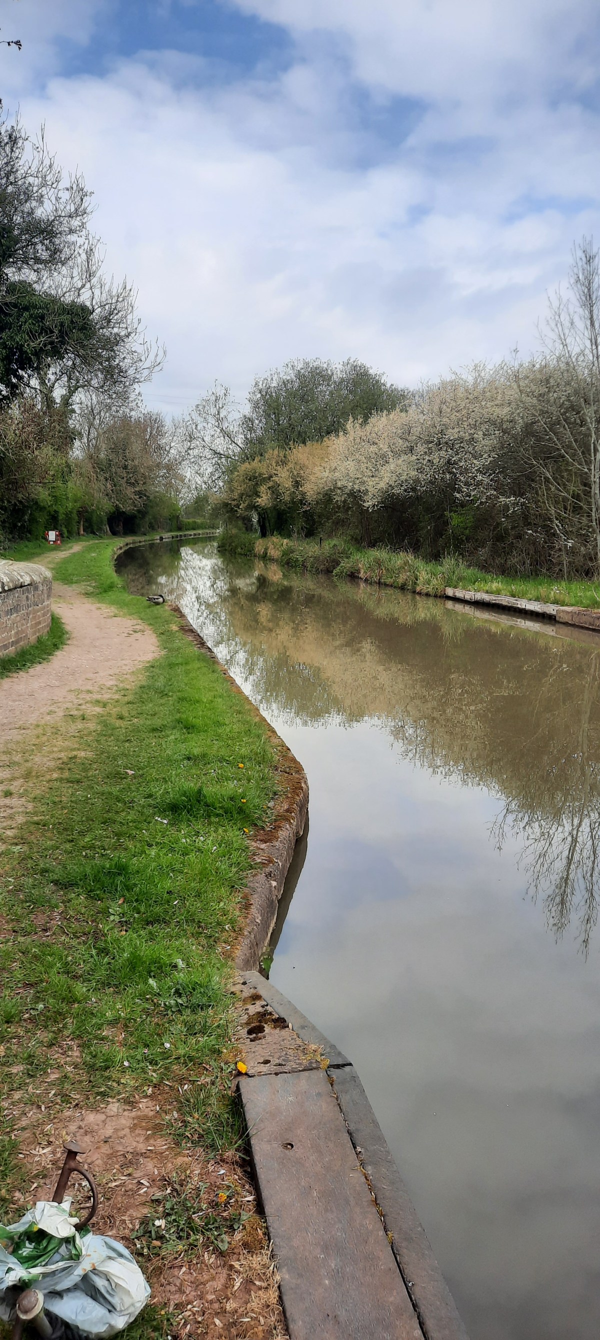 The puppy needed a walk and a pee so J and R jumped off the boat a couple of bridges before the winding hole to also stretch their legs. Agreeing to meet at the turning circle H and I continued on the boat but rather surprisingly arrived before the men, who had been slowed down by the puppy. I decided to have a go at turning the boat, a skill that I haven’t tried without R to guide me so I was fully expecting trouble. For some reason it was remarkably easy to do and I felt quite shocked. Of course there was no wind, it was plenty wide enough and there were no onlookers to make me feel self conscious. It may be a one-off but it is a necessary skill to have as at some point a boat needs turning! Unless of course you can find a totally circular route, such as the one we undertook a decade ago.