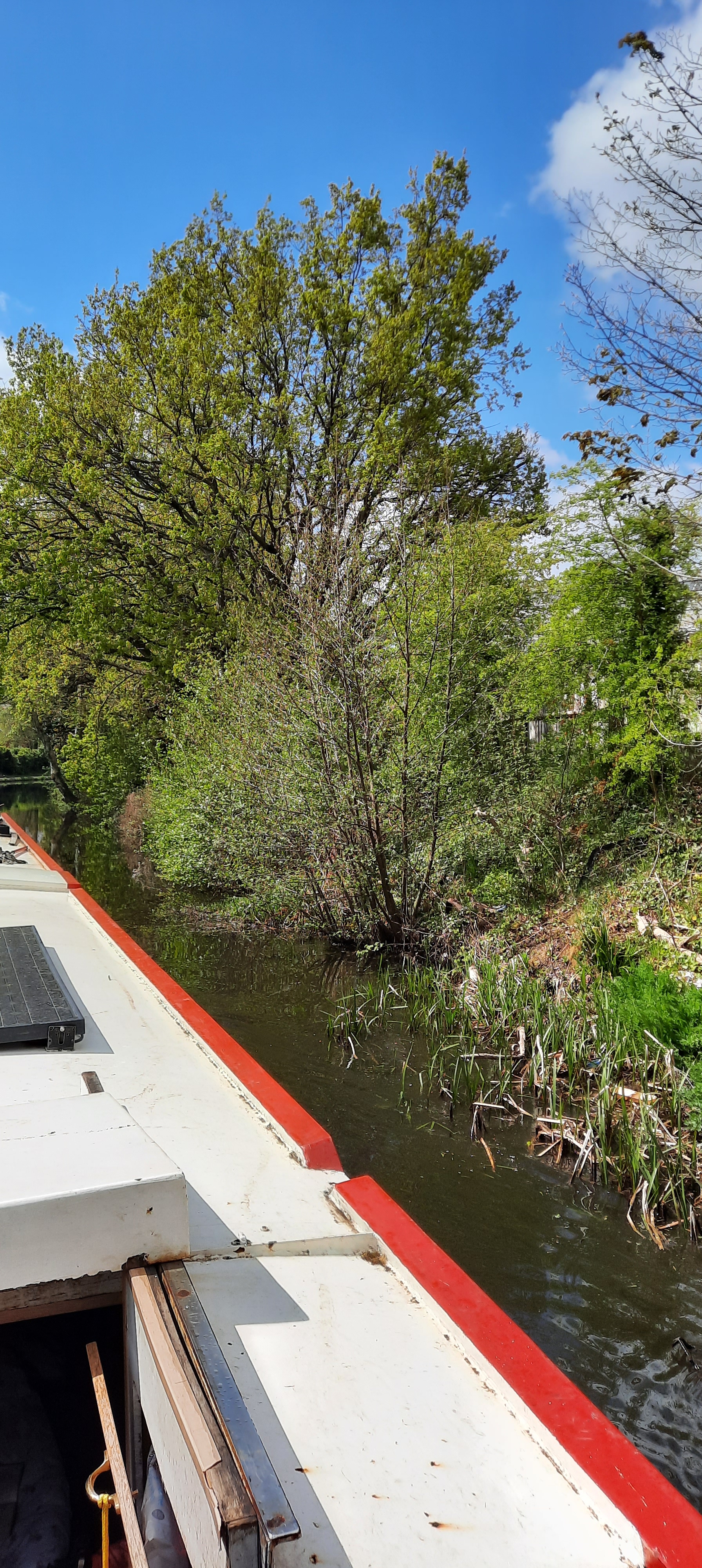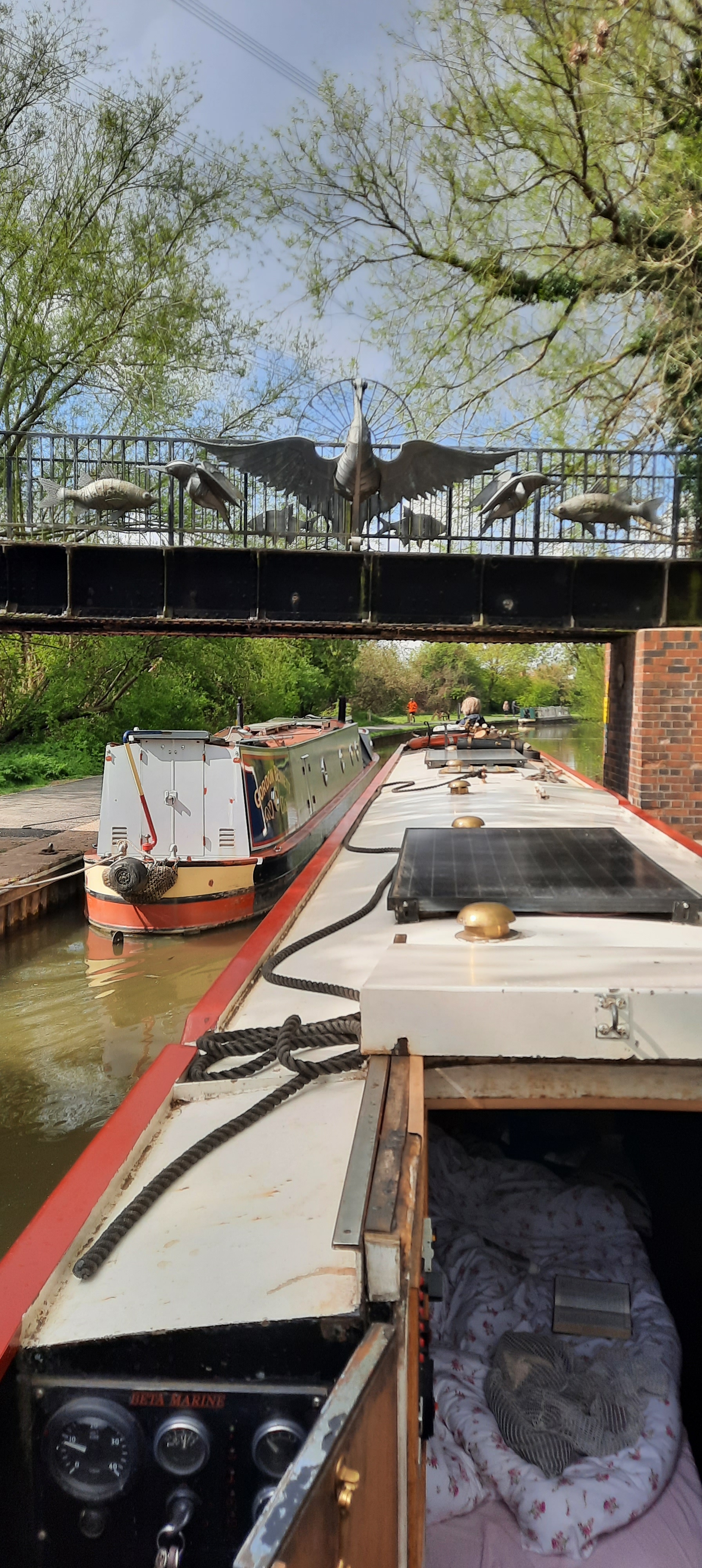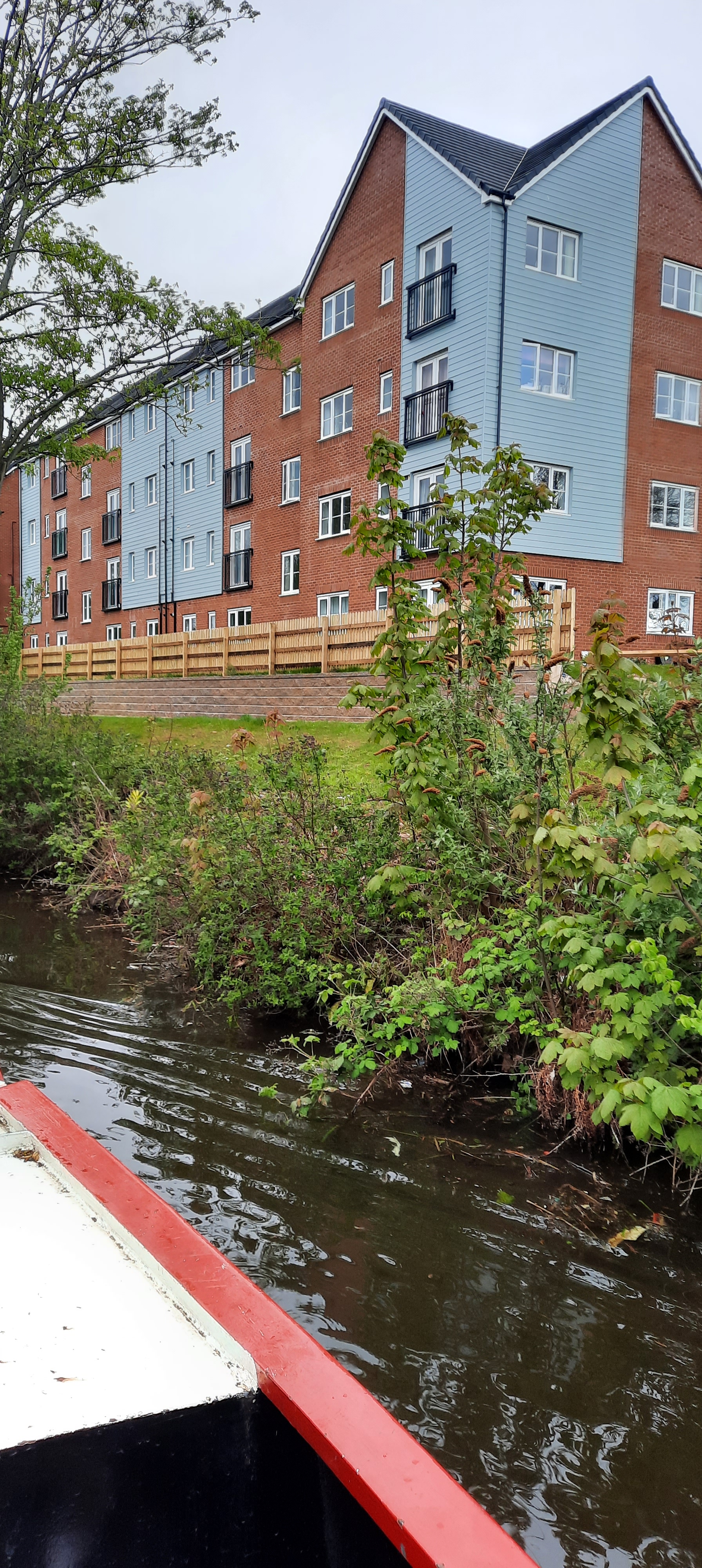 Seems like a very long day today, perhaps because we have gone back down memory lane. Coventry was where R was living shortly after we first met and so all our early courting was done here. Many a train journey I took from London to Coventry and in those days we used to jump over the metal barrier to cross the ring road, rather than use the walking bridge provided! I didn’t remember exactly where R’s flat was in relation to the canal basin. I don’t even remember the canal! Yet, we turned right out of the basin, where we had found a space to moor the boat, walked up a hill for a couple of minutes and there we were at the flat. I just about remembered it but I think we were last here 37 years ago. The canal then was not a pretty feature and I don’t remember seeing many boats. It has been lovingly bought back to life by energetic volunteers and CRT maintenance. Locals are encouraged to use the well maintained wide towpath for exercise and enjoyment. It’s a 5 and a half mile stretch back to Hawkesbury Junction and that is what we travelled down today through many a changing vista. Some lovely green trees and bushes, graffiti good and bad, rundown housing, new building works and attractive canalside dwellings. High rise buildings and industrial estates. Loads of volunteer CRT members litter picking and a few joggers and one or two fishermen. One warned me that under one of the bridges yesterday a narrowboat got entangled with a couple of supermarket trolleys that had thoughtlessly been thrown into the canal. I made sure I kept to the right hand side of each bridge, as far from the towpath as possible. There were some challenging turns, not helped by canal boats awkwardly moored.