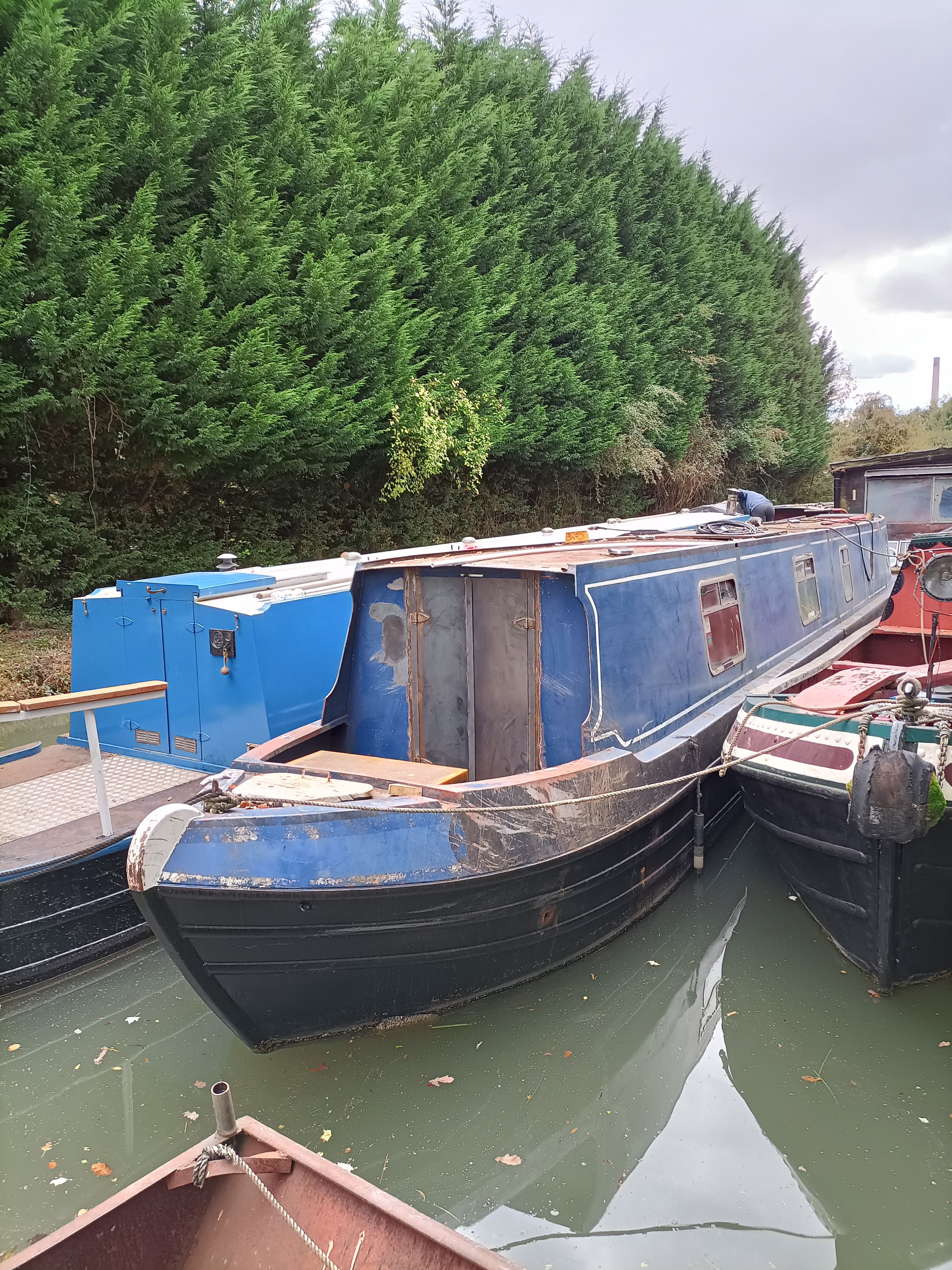 2330hrs. Quite a day but still no movement. Patience is a virtue. At least we are now settled on the boat – it just can’t move! However we were literally blessed by the arrival of Ro, my step brother. He came in his white van and put himself at our disposal. Just as well because a misunderstanding led to there being nothing useful on the boat, such as bedding, mop and bucket, floor mats etc. Al had thought we wanted to bring everything – I had assumed we had agreed it would be kitted out like WindRose, where all basics were provided but you chose whether or not you brought your own crockery and kitchenware. So off we went to the Asda superstore followed by the mega Sainsbury’s in Rugby. Arriving back at the boat, no sign of the fuel injectors but J set us up with some power and I set about unpacking. It’s a daunting task as you look at a car load of stuff and wonder where it is all going to fit. How to store it logically so you can remember where you have put it and how to make best accessibility for the things you need the most. As a newly refurbished boat, although looking beautiful, it was somewhat lacking in hooks and not quite enough kitchen cupboards. Necessity is the mother of invention so after considerable thought, tomorrow we are off to scour the shops for shelving and various items that can make best use of space available! In addition to all else that happened today, when R and Al were moving our belongings from pub garden to the boat, the car boot was left open and one box fell out – how was it possible that that was the one box-load of glasses and mugs. Suffice to say we will be charity bric-a-brac surfing tomorrow!