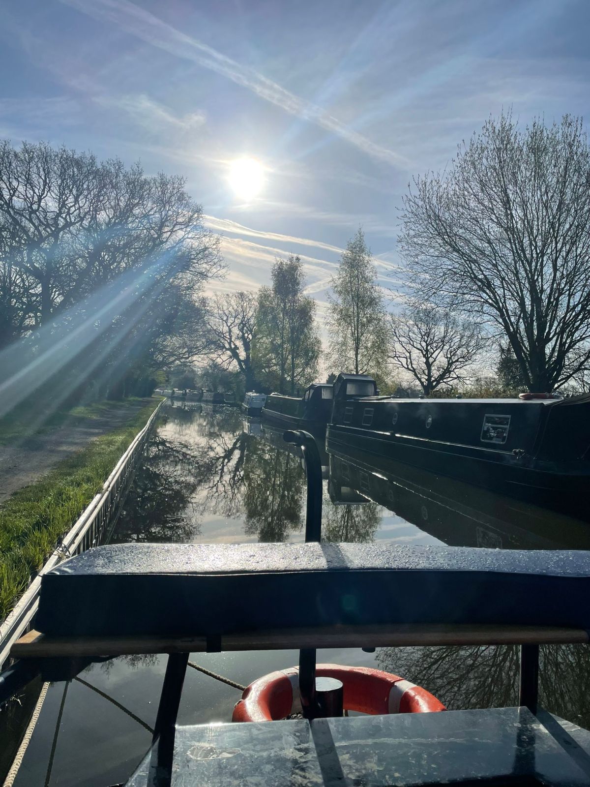 We travelled along until we found a suitable place to turn the boat. It also gave us the opportunity to walk further along the towpath to assess our mooring next week. A great spot with parking and a pub is now earmarked! As we journeyed along the cut back to where we came from I took the opportunity to prepare the boat for our departure. Ro very kindly told us he would drive us all the way home so we decided to leave today rather than tomorrow as originally planned. That way Ro could sleep in a bed (he thought he was sleeping in his van) and I would be more guaranteed to get to my hair appointment. I don’t go often so when I do it is usually long overdue and I don’t want to let the side down as mother of the bridegroom by arriving with hair that hasn’t had a trim in six months!