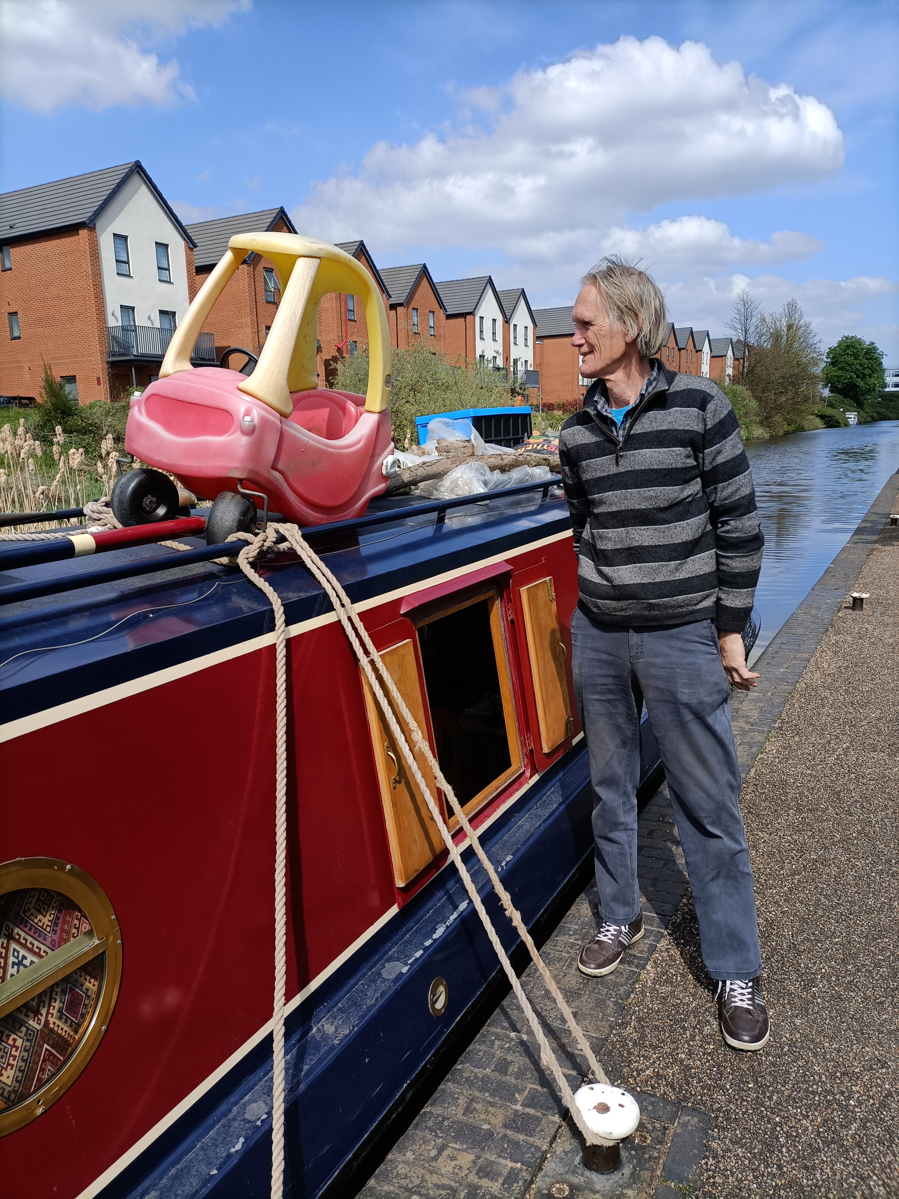 We used to have one of those red cars when our children were small so I was very tempted to travel along with it until our son P arrived mid afternoon and say we’d picked it up for him! Not very funny, so R disposed of it in the next CRT rubbish bins we came across. But it does amaze us finding what rubbish people dump in the canals, having no thought for the wildlife or the undercarriage of the many boats that use the waterways.