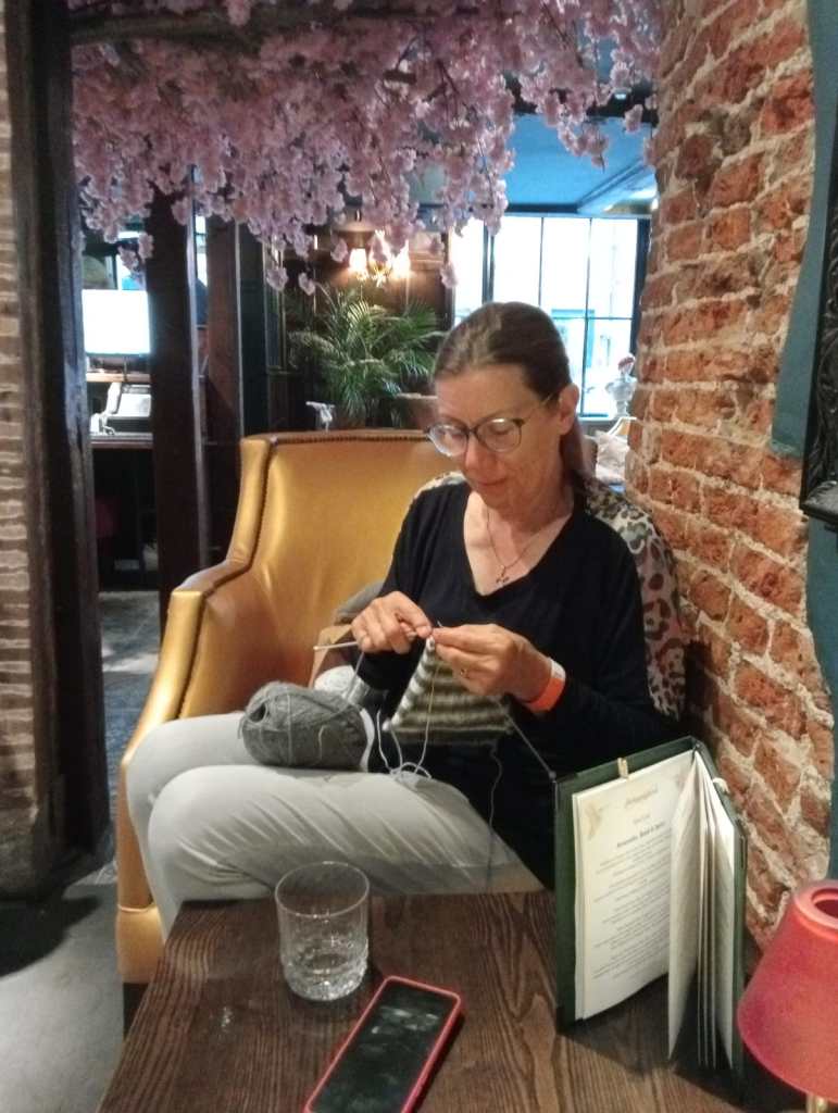 The town was certainly more colourful on the Sunday afternoon. We had attended St Andrew’s church in the morning, where my parents worshipped after dad retired from Gt Amwell and were delighted to meet people who remembered them well, especially one lady who said her husband visited my dad twice a week to help him with his paperwork, a task that got steadily harder as his sight and memory failed him. The service responses were sung throughout, which reminded me of dad as he always did the same and there was much similarity to the church of my youth so it was a comforting place to be. The contrast to our afternoon was striking, as Hertford became alive with music at its 17th music mystery festival – 35 local pubs hosting musicians who did one hour sets from lunchtime into the evening. The extensive program was a bit overwhelming but I spied an Abba duo performing in a nice looking pub along the High St where we managed to find a couple of comfortable armchairs and armed with cocktails, enjoyed a couple of hours of entertainment, whilst I got out my knitting!! I did also get up and dance when I could resist it no longer and even got R on the makeshift dance floor! However as the afternoon wore on it was a bit depressing seeing the effects of too much alcohol in the streets and the presence of police cars with their sirens wailing. Overall though, I would think most people, of which there were many, had a great time and just enjoyed listening to so many different bands and genres of music. Later in the evening we visited the ‘Hertford Club’ and enjoyed the performance of an older couple who sang mainly folksy songs but with a plethora of unusual instruments. As we arrived at the club we bumped into an old family friend who had been at mum’s Thanksgiving service but actually lives in another of the local towns so that was a happy surprise encounter!