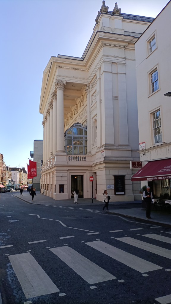 A few years ago R and I tried ballroom dancing – it was my way of thanking him for supporting me in all the Scottish dancing we have enjoyed over the years. Daughter Ho, remembering this, gave us tickets to a tea dance at the Royal Opera House in Covent Garden. Booked for last Monday, it was one of our reasons for getting to London beforehand. Little did she realise how unsuccessful our ballroom career had been. The first lessons, we missed a few, so by the end of the year, having not progressed, we decided to retake the beginner’s class. R was very good but I just never got the hang of it. By the end of year two, our friends were streets ahead of us and I just couldn’t face either repeating the beginner’s class or attempting the intermediary. Covid hit and our illustrious ballroom dancing ground to a halt! To be a fly on the wall, watching the footwork of those who can dance was a revelation! R, rightly decided, we should not join the throng. It would be embarrassing and we’d bump into other dancers. I did slightly regret that we hadn’t looked at YouTube to remind ourselves of a basic waltz or quick step (and I did remember I actually rather liked the rumba!) but can you imagine trying to practice on a narrowboat!! It was worth the visit just to see the beauty of the opera House.