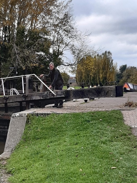 Yet another flight of locks to negotiate, known as the Stoke locks. We decided to get going pretty early and I was hopeful that we might have a companion on the journey to ease the workload but this was not the case. Nor were the locks ready to just enter in – all of them had to be emptied first which increases the length of time it takes to complete the task! Just before the final lock there seemed to be enough space for us to rest up and have a coffee. Before long a knock on the window engaged us in conversation with a chap who was about to enter the lock from the opposite direction. He was in no hurry so was happy to wait for us to take a break and stopped to chat. It transpired he bought a narrowboat at the beginning of the year and tried to persuade his wife to join him in a life on the canals. It seems that she preferred to stay with the conventional life, her job and collecting her pension. Her husband meanwhile had seen too many of his friends die or get ill in recent months so could no longer see the point of living life saving up for a rainy day that may never come. In his late fifties, he has opted to live a simple life on his boat with far fewer overheads, until he is not fit enough to cruise the waters. As Covid hit in March, he had little option than to stay in the same area for a few months but he appeared content and happy with his lot. Infact he had become quite fond of Milton Keynes! I can just imagine what some of you must be thinking – isn’t Milton Keynes that new town that looks an eyesore and is characterless with its little boxes of houses all in neat rows! How wrong I think you are. We started our married life just outside MK in a village over 30 years ago. Even then I thought they had landscaped it well (and I took full advantage of the shopping village, finding reasons to visit John Lewis on a weekly if not bi-weekly basis!) and now, passing through on the canal, there is lots of greenery and plenty of trees. Although individual gardens are nothing to speak of, there is plenty of open space to walk and we saw many folk enjoying family time in different parks and woodland. But I am getting ahead of myself because this is Friday and we only get as far as Wolverton where we stop the night near a pub called The Galleon. We didn’t need to eat there but we enjoyed a variety of beverages including a delicious raspberry gin and it had a friendly atmosphere. Again, the thought crossed our mind that if we can give the pubs some business then so much the better for them.