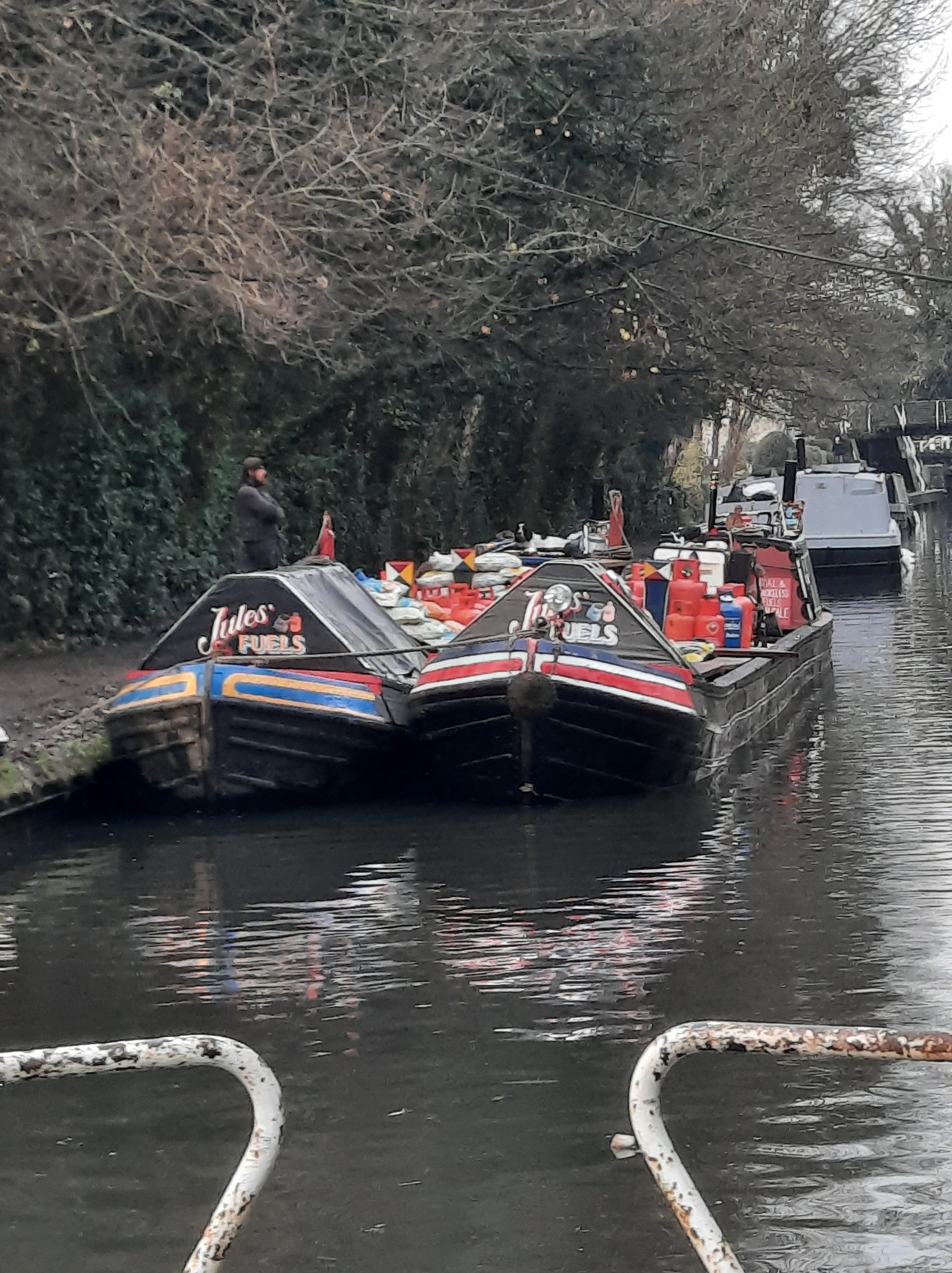 I filled the lock (laboriously slowly as one of the paddles was not working) and just as we were about to go in Juels Fuels arrived so R decided to wait for them as we needed gas, coal etc. That meant they took our full lock so we had to start again refilling it. Our early start disappeared and then who should appear on the towpath but a friend from Thorpeness. She just happened to be walking along to pick up her car from a nearby garage. I had no idea she lived in Rickmansworth. Her mother, I seem to remember being told, was rather sweet on R’s father before he got married!