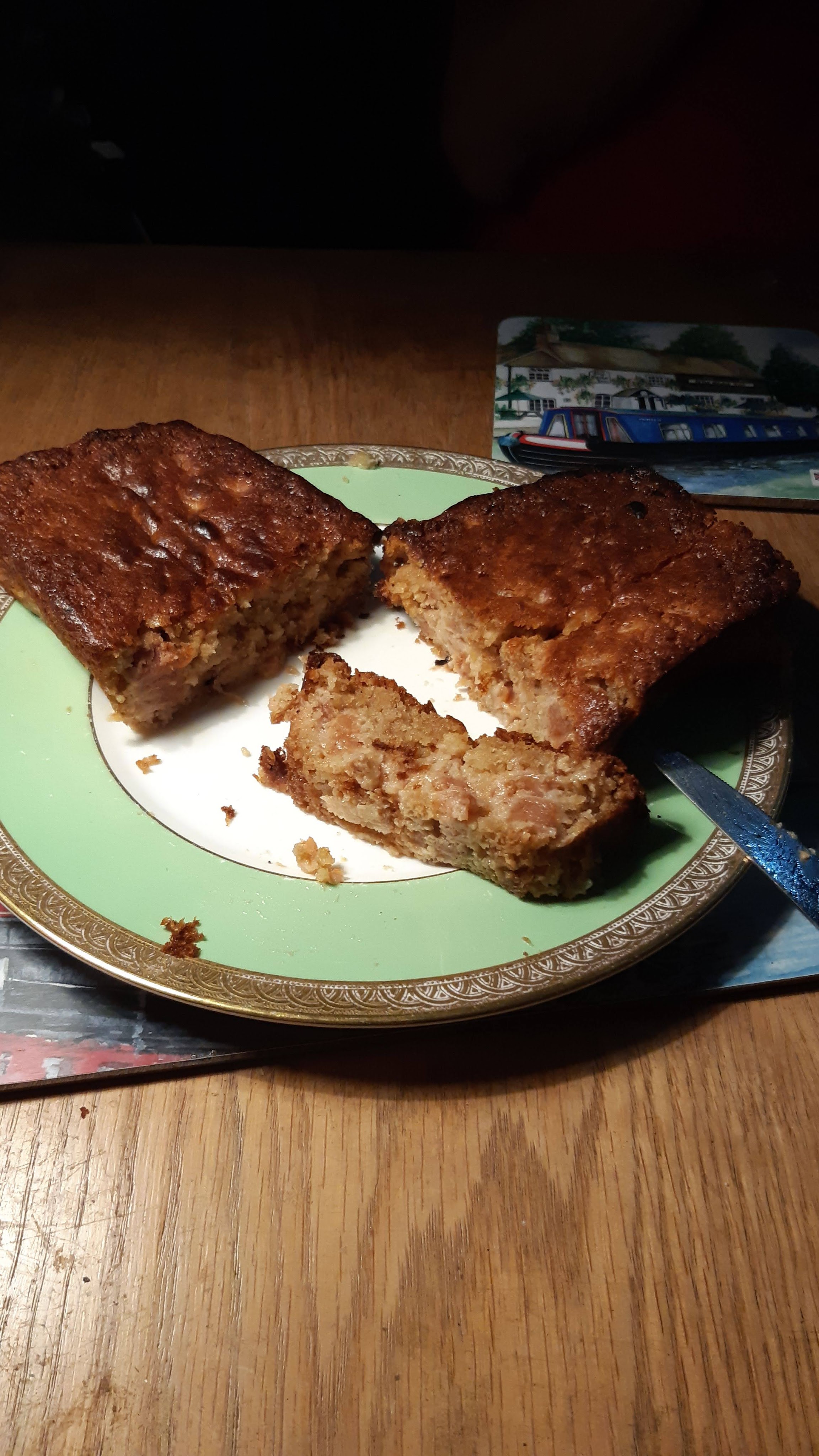 A friend who lives locally arrived late morning and we went on a lovely walk across the fields – an area of Berkhamsted that we had not previously discovered and it was refreshing to be in wide open spaces. Returning to the boat, with the wet weather closing in, I decided to try my hand at making a cake with the quinces I had pre-baked in the oven yesterday and was pleasantly surprised with the result.